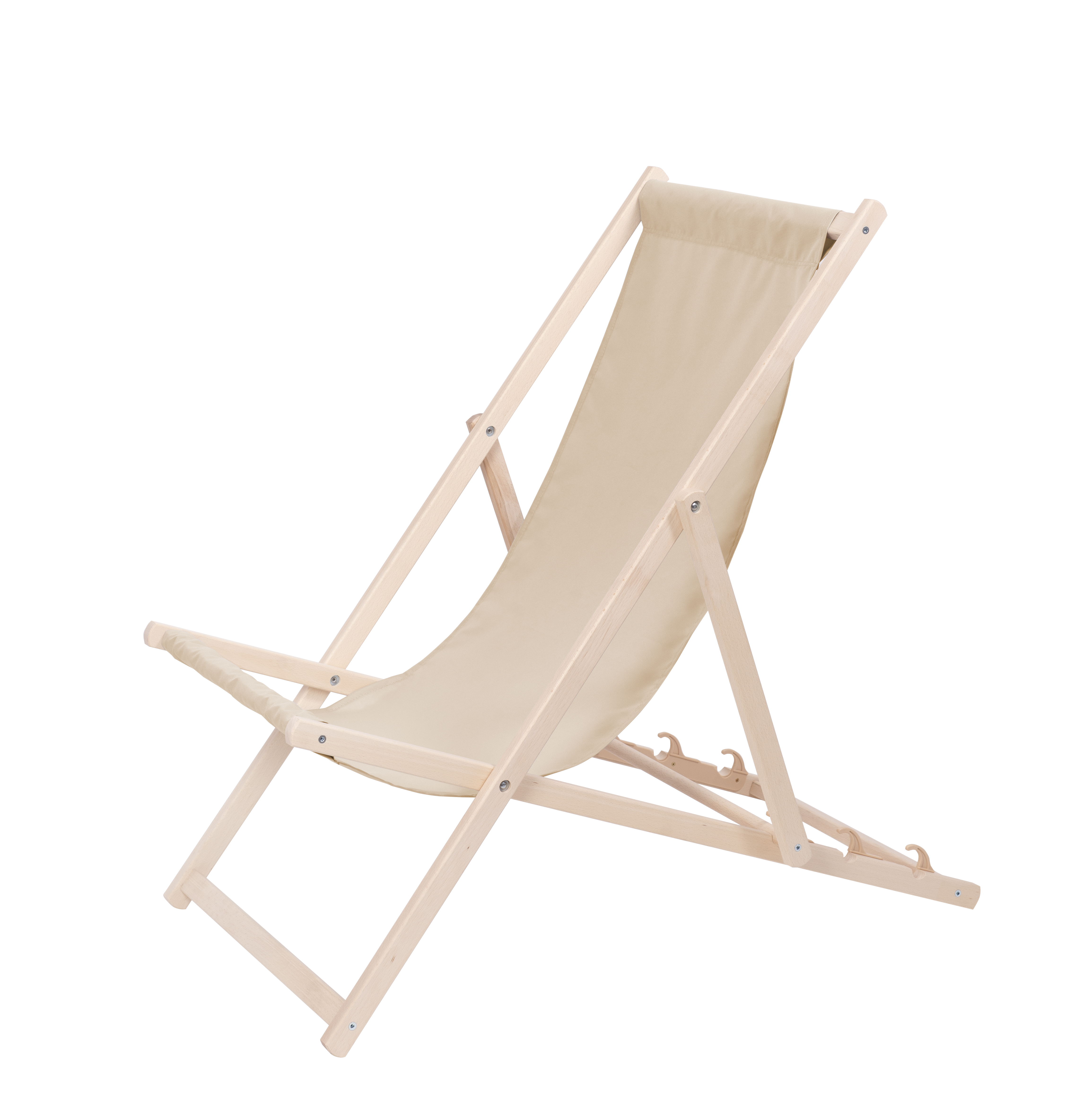 trzystopniowa regulacja oparcia leżaka z przykręconym plastikowym zabezpieczeniem